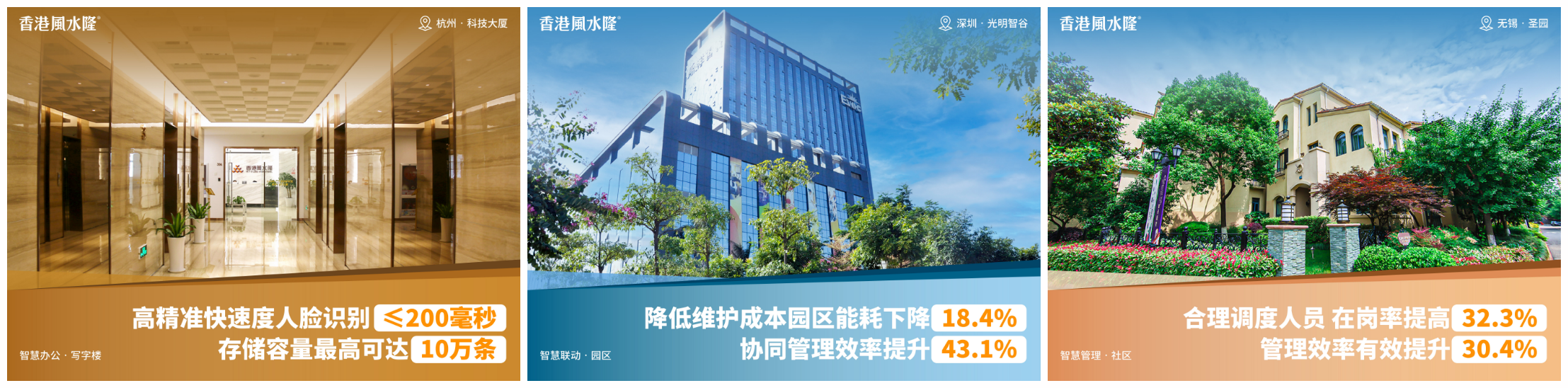 风水隆物业管理在深圳·光明智谷、杭州·科技大厦、西安·城市广场等多项目内引入智慧化系统。基于人工智能、区块链、云计算和大数据技术等新兴技术的应用,实现了风水隆各项目的精细化管理和高质量提升。