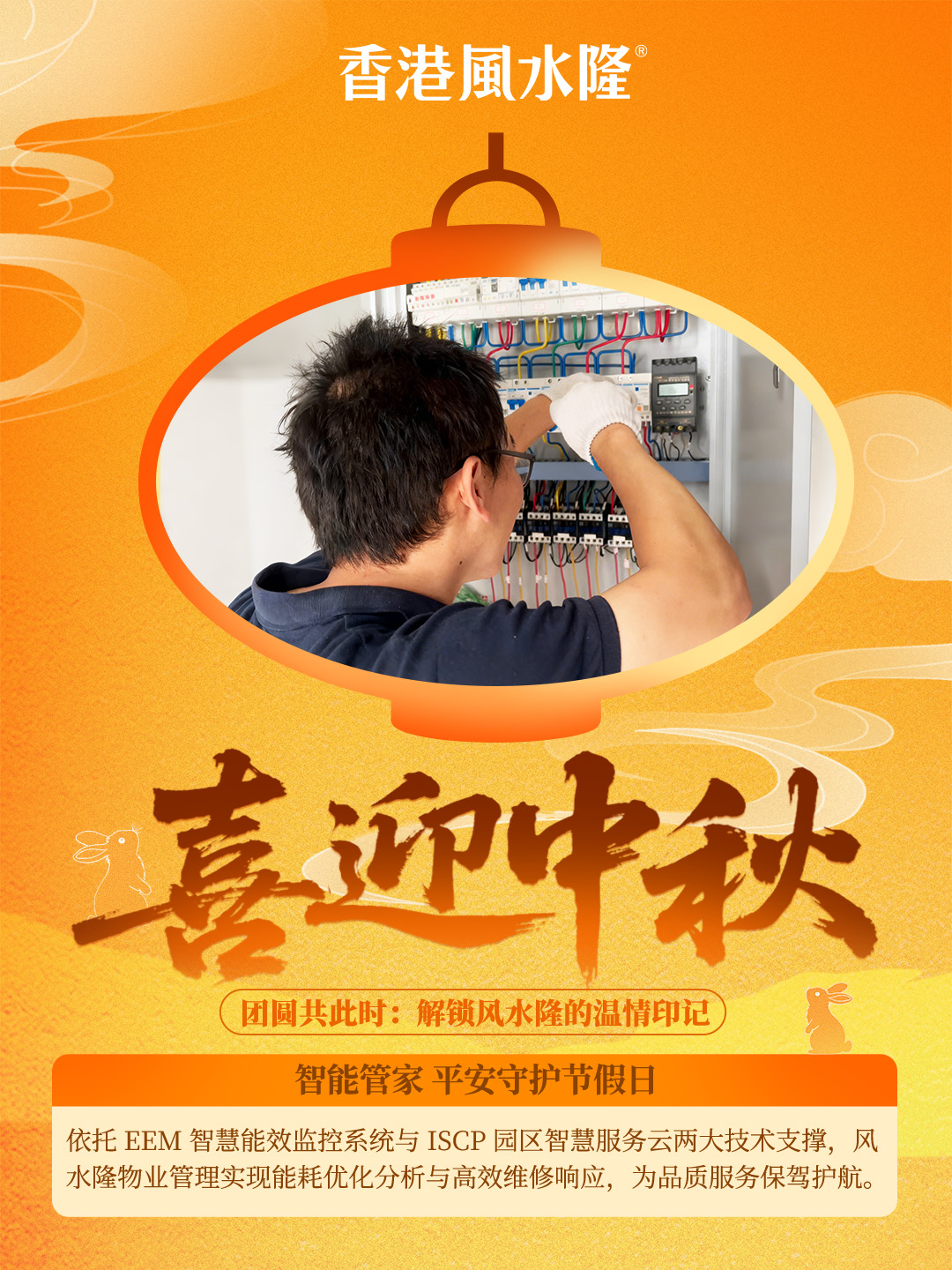 智能管家 平安守护节假日:依托 EEM 智慧能效监控系统与 ISCP 园区智慧服务云两大技术支撑,风水隆物业管理实现能耗优化分析与高效维修响应,为品质服务保驾护航。