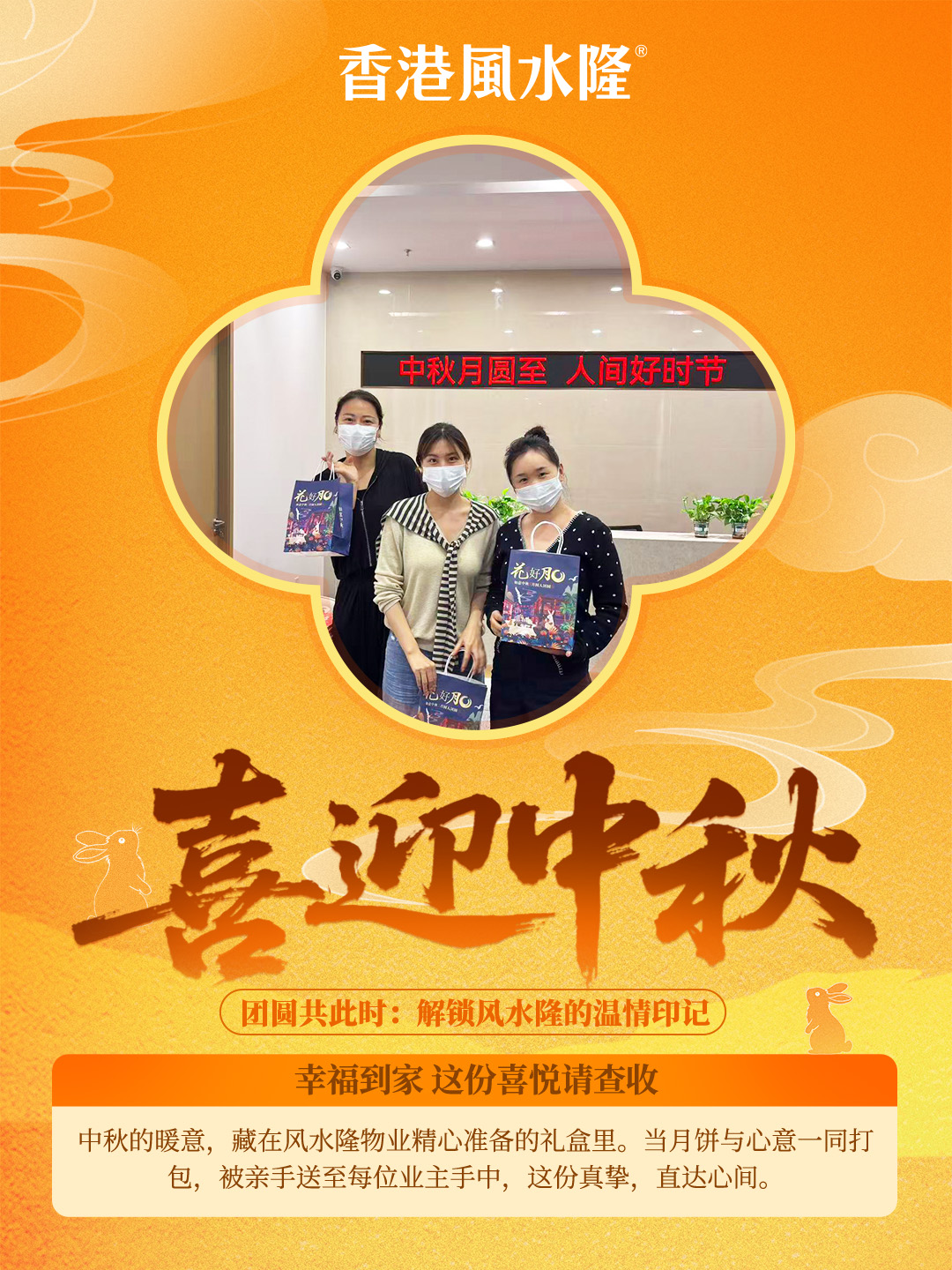 幸福到家 这份喜悦请查收:中秋的暖意,藏在风水隆物业精心准备的礼盒里。当月饼与心意一同打包,被亲手送至每位业主手中,这份真挚,直达心间。
