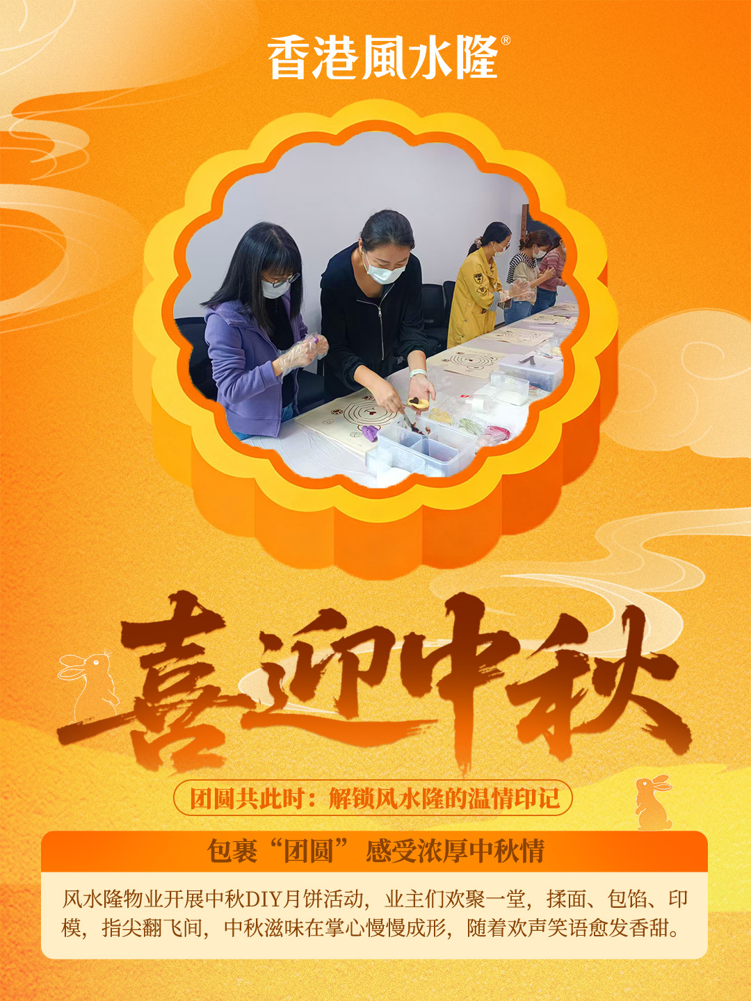 包裹“团圆” 感受浓厚中秋情:风水隆物业开展中秋DIY月饼活动,业主们欢聚一堂,揉面、包馅、印模,指尖翻飞间,中秋滋味在掌心慢慢成形,随着欢声笑语愈发香甜。