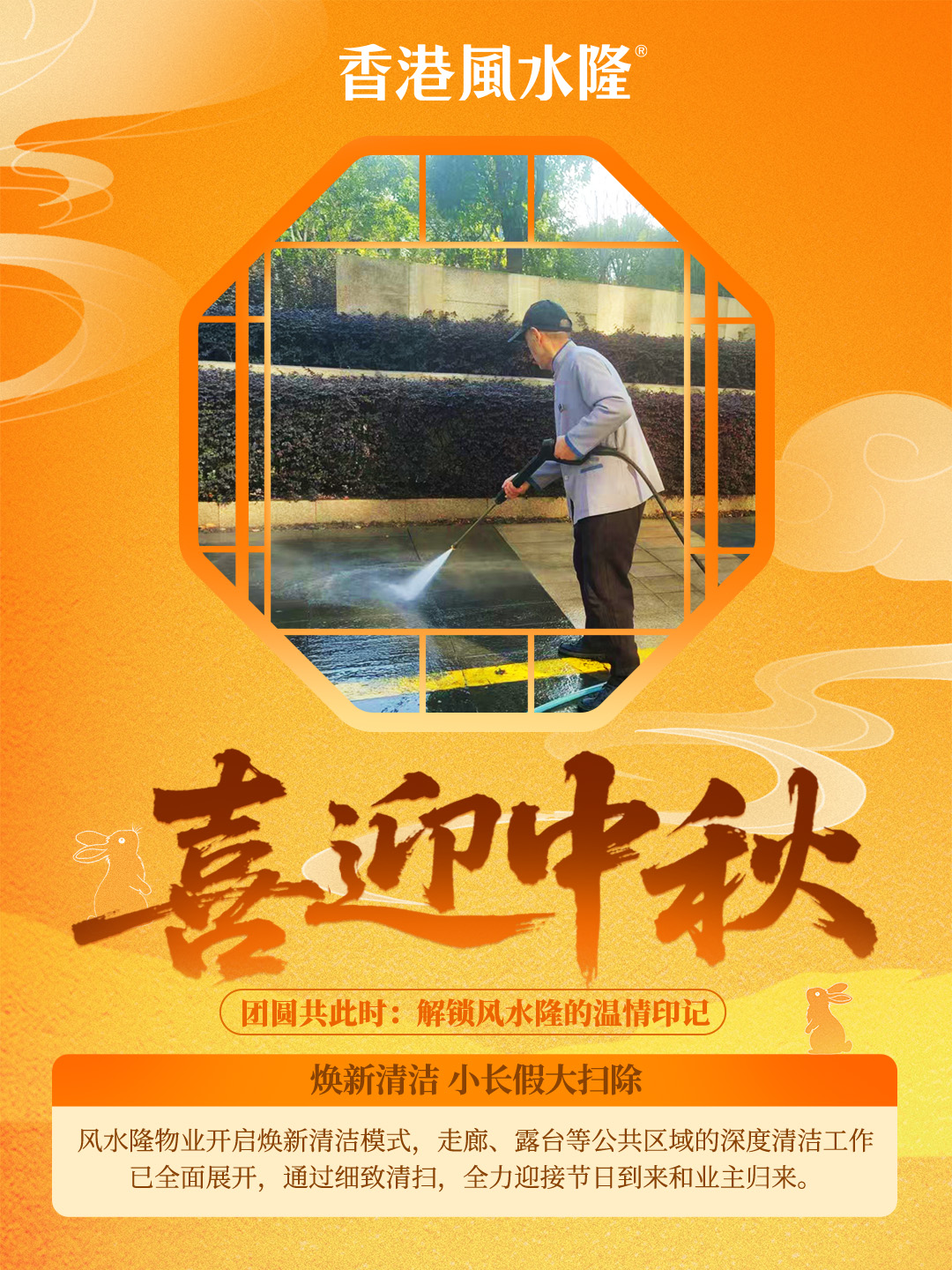 焕新清洁 小长假大扫除:风水隆物业开启焕新清洁模式,走廊、露台等公共区域的深度清洁工作已全面展开,通过细致清扫,全力迎接节日到来和业主归来。